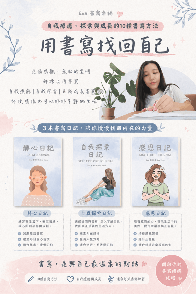 自我關愛日記怎樣寫?每天一頁:寫日記自我關愛 Leave a Comment / 心流寫作, 日記, 開心寫作 / By evavoon 你愛自己嗎?愛自己聽起來似乎是理所當然的,但有時,愛自己並不容易,為什麼會這樣呢? 我們都知道愛自己多一些的重要性,但內心總會出現一些自我批判的負面聲音。 就像你的心靈存在一道玻璃牆,雖然你可以從透明的玻璃看見另一邊的美麗花園,卻無法觸及美麗的花朵一樣。 這是因為我們的意識雖然明白這道理,但潛意識的程式卻受到障礙。 那要怎麽辦?一旦我們習慣了某種負面思考方式,就必須用正向的態度來改變,重新糾正我們的思維路徑。 本文要和你分享如何寫自我關愛日記,幫助你通過寫自我關愛日記,找到内心的平靜並自我實現 Table of Contents Toggle 寫日記有哪些好處呢?自我關愛日記怎樣寫?發現內心的批評者改寫你的內心劇本列出你喜歡自己的事情總結: 寫日記有哪些好處呢? 當你將思緒通過書寫記錄下來時,就會專注於當下。書寫時,你會進入到一個深入思考、聆聽內心聲音的層次,而這過程就是培養新思維方式的有效方法。 自我關愛日記怎樣寫? 發現內心的批評者 我們的內心都住著一個批評家,那個小聲音喜歡挑剔我們的“缺點“並不斷拿這缺點和別人比較。我們需要學習的是把這些批評性的思維與正向的思維區分開來,這樣的話我們就可以更容易地達到自我關愛了。給你內心的聲音取一個名字問題來了,我們要如何把批評性的思維與正向的思維區分開來呢?可以試下給你內心的批評者起一個適合他們性格的名字,並將其記錄在你的日記中。 列出他們的特點起好了名字後,可以列出他們的特點。他們很挑剔,總是吹毛求疵?他們是悲觀主義者,總是把情況想得很糟糕?為什麽他們會這樣呢?或許我們也要明白他們是有自我保護和害怕的一面。 畫一幅他們的畫像你的畫不需要太精緻,簡單的塗鴉就可以。他們可能看起來像你生活中的某人(也許是像哪位嚴厲家長或老師),或者是年輕版的你。 現在,每當這個聲音出現在你的腦海中時,設想你內心的批評者嘴裡冒出一個對話氣泡。當你將他們視為與自己不同的個體時,你就更容易辨認出他們所說出的話並不是事實的全部。 感激他們保護你自己要達到自我關愛更好的狀態,不是只往正面奔,而是要學會和黑暗相處。簡單來説,你內心的批評者實際上是在試圖保護你免受傷害。他們的方法或許是不正確的,但出發點是善意的,所以也請你和他們共存。 寫一封感謝信給他們,感謝他們的付出,並解釋你和他們都是安全的。 改寫你的內心劇本 既然你知道了你內心的批評者是誰,你能對他們傳遞給你的思維進行什麽改變呢?當消極思維浮現時,有時我們需要靜心思考才能察覺。一旦我們缺乏意識它們就會和我們頭腦中的其他思維完美契合,以至於你可能不知不覺就接受了它們。所以當你發現自己不斷在負面思維循環時,就把這些循環不息像蒼蠅般的惱人信息都記錄下來。寫下他們、看見他們並劃掉它們,將這些想法轉化為積極的行動。三個改寫例子:負面批評轉換為正向 我總是搞砸一切。 這次我是做錯了,我會吸取教訓並想辦法解決問題。 我討厭我剛才的表現,我好尷尬啊! 我有點措手不及,說錯話了。但我知道我只是直接表達想法,值得被尊重。 我的報告總是不夠好,永遠達不到要求。 我的報告目前可能還不夠出色,但我會不斷學習和改進,以提高品質並滿足要求。 列出你喜歡自己的事情 寫下你喜歡自己的一切,從個性、外貌到行為,盡可能具體描述一下喜歡的原因。不斷擴展滋養清單每當你想到新的方法自我關愛時,都把點子加入你的滋養列表吧!在你的日記中留出足夠的空間,甚至可以專門用一本來記錄這個滋養清單。寫著寫著,你會發現可以帶給你快樂、滋養你的事情變得越來越多,多得讓你都數不過來!定期回顧列表當你再次面對沮喪、需要力量時,就可以打開並查看日記裏寫下的一字一句。可能在最需要時你會不想這樣做,但無論如何久久建議你要回顧一下自己的日記。或許你可以把自己寫下最喜歡或最能安慰的句子抄在便簽上,然後貼在鏡子上鼓勵自己。 你也可以參考:50 個富有洞察力的自愛日記提示 總結: 寫日記是促進自我關愛的好方法,就像給植物灌溉水份一樣,需要定期的關懷。無論你現在背負著多少種身份,都要將自我關愛置於首位。記得自我關愛不是自私,而是好好愛自己以後,為自己注入了足夠的養分後,才有力量好好愛和照顧所愛之人。 延伸閲讀:心流寫作系列文章01-什麼是心流寫作? 療愈你的內心,讓人生方向更清晰02-為什麼心情總是難以平靜?心理學家證實寫作會帶來平靜和治療效果03-寫作療愈:讓心情平靜下來的心流寫作5步驟04-如何透過寫作自我探索? 解決內心迷茫,發現潛在的人生道路05-改變想法就能更快樂?如何用ABCDE轉念寫作改變想法、改變結局 06-日記要怎樣寫?6種寫日記的方法,釋放情感、促進成長